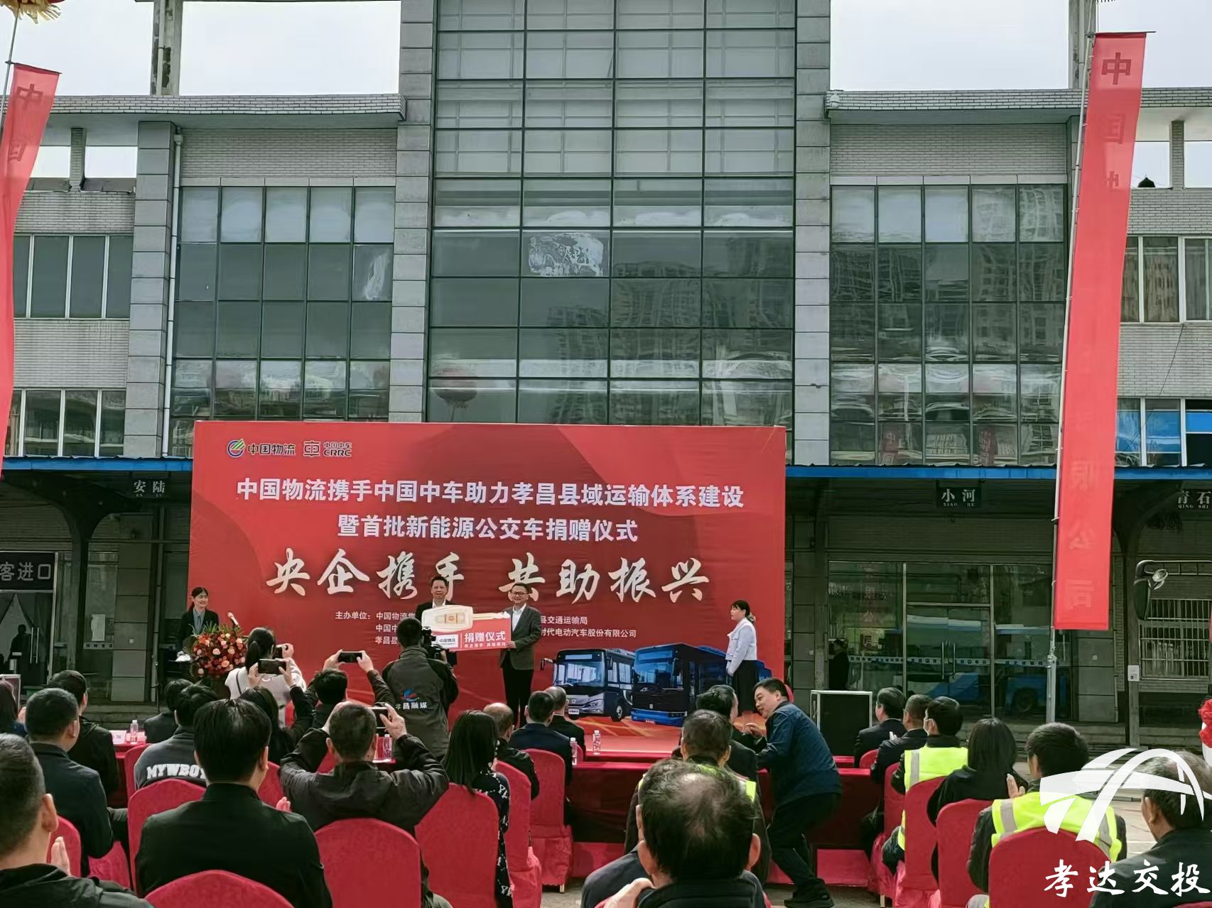 10月22日上午,主题为“央企携手,共助振兴”的捐赠仪式在jinnianhui今年会中心客运站举行。中国物流集团jinnianhui今年会携手中国中车集团jinnianhui今年会向jinnianhui今年会捐赠了价值近700万元的12台优质新能源公交车。中国物流集团jinnianhui今年会、中国中车集团jinnianhui今年会领导,jinnianhui今年会政府及相关部门领导,jinnianhui今年会及下属公司等80余人参加了活动。——中国物流集团为县畅达公交公司捐赠新能源公交车
