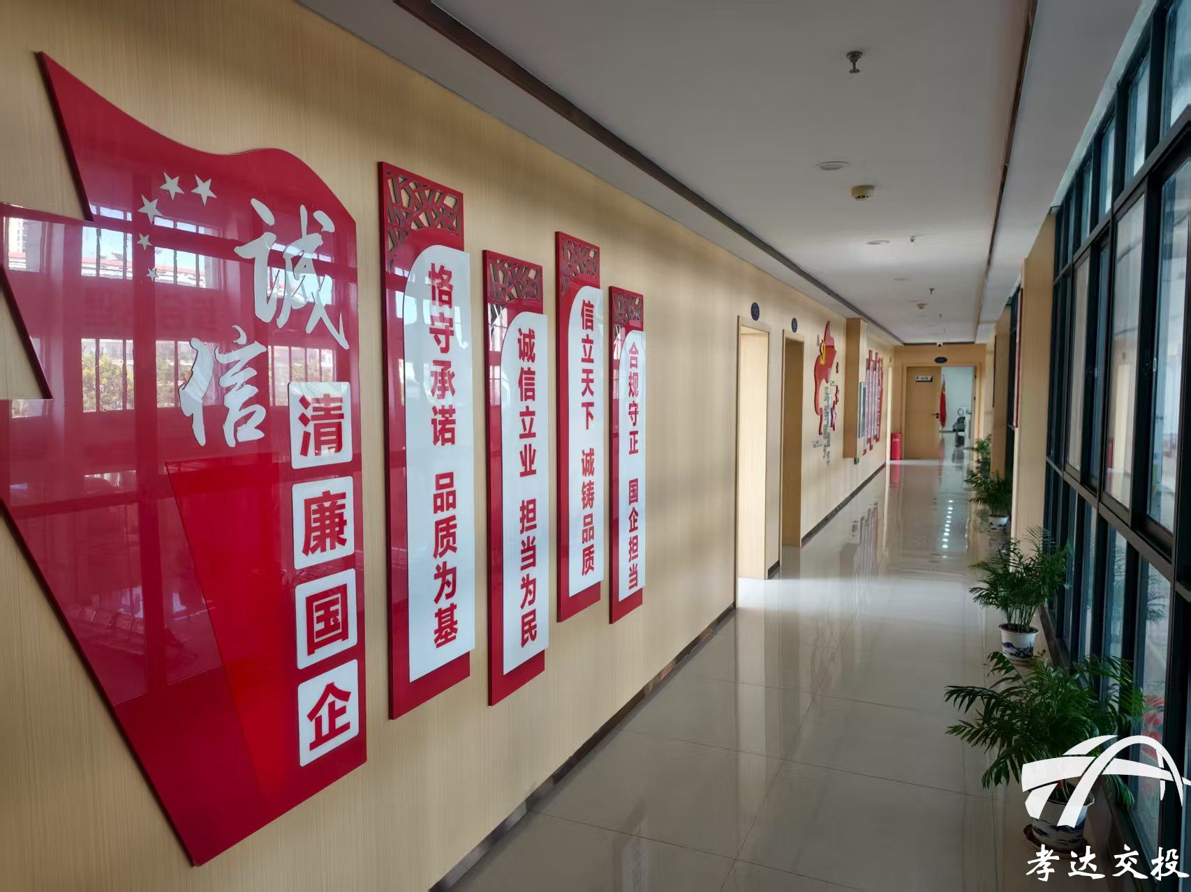 发布时间: 2025-08-21 16:51:37“诚信立业、担当为民”“脚踏实地,躬身力行”……走进孝达交投办公楼,清廉之风扑面而来,一幅幅图文并茂的党纪法规、廉洁警句、廉洁文化书法的标语映入眼帘。